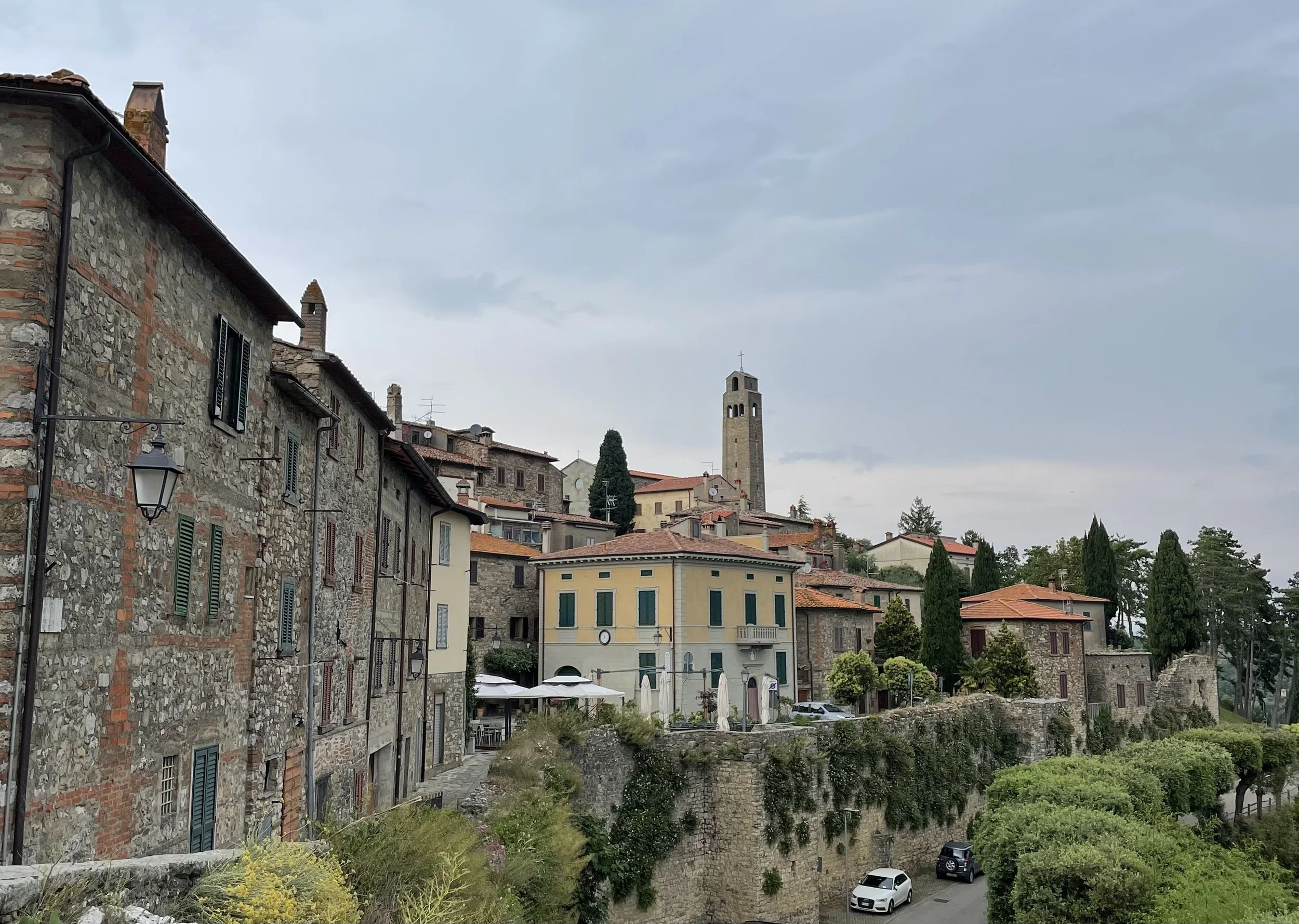 Civitella in Val di Chiana is a small village, located between Arezzo and Siena. The village is quite tricky to reach using google or apple maps. I would recommend typing the castle of Civitella into your directions, then the maps will lead you in the right direction. Cars are not allowed inside the village, so make sure to park your car along the border wall of the village, and take the stairs up to the square above.